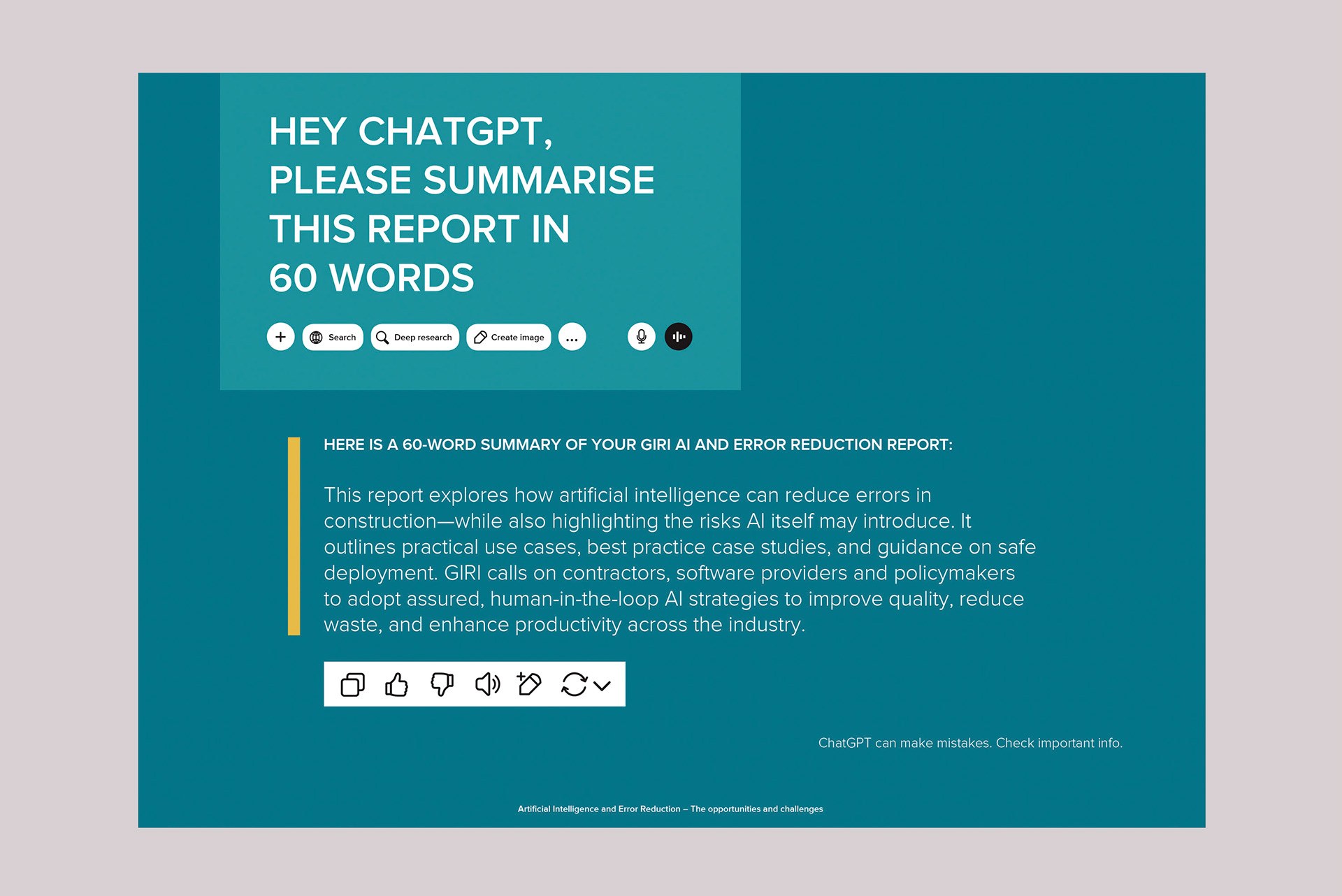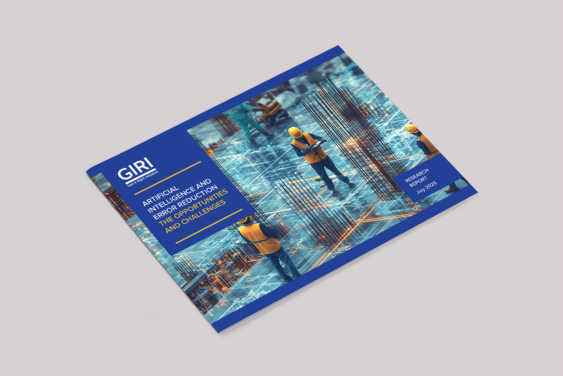 Brochure project in collaboration with designbysmith.com and printed by Selseypress.co.uk. The GIRI research report is an annual publication showcasing technology and topics within the construction industry. I developed a landscape format that was brand compliant and created bespoke infographics through the layout to illustrate the adoption of ai tools within the sector. getitright.uk.com